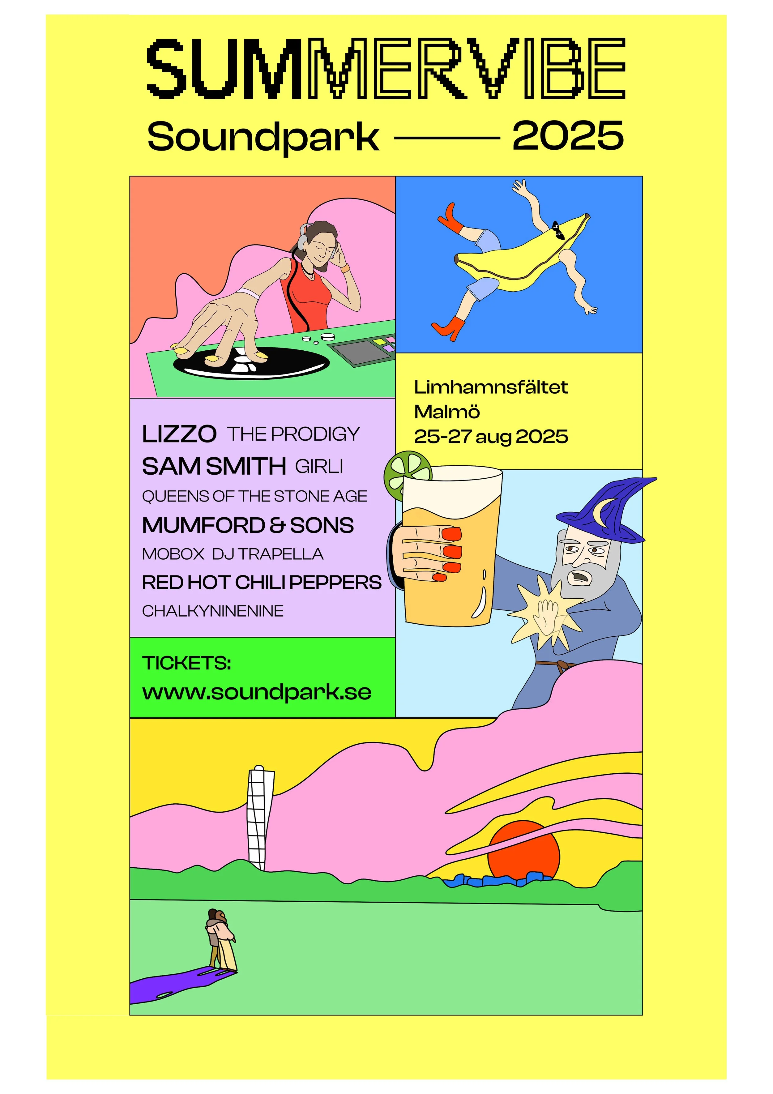 “Festivalen har målgruppen 18-35 år och satsar hårt på band som spelar klubbmusik. Vi vill förmedla fet klubbkänsla, fest, sommar och vara kaxiga. Vår affisch ska sticka ut och synas bland andra affischer och vi vill att den som ser affischen ska få rätt känsla, se vår lineup och direkt dra in till www.soundpark.se och köpa biljett. Vi har endast en logotyp som du ska använda, annars har du kreativ frihet.”