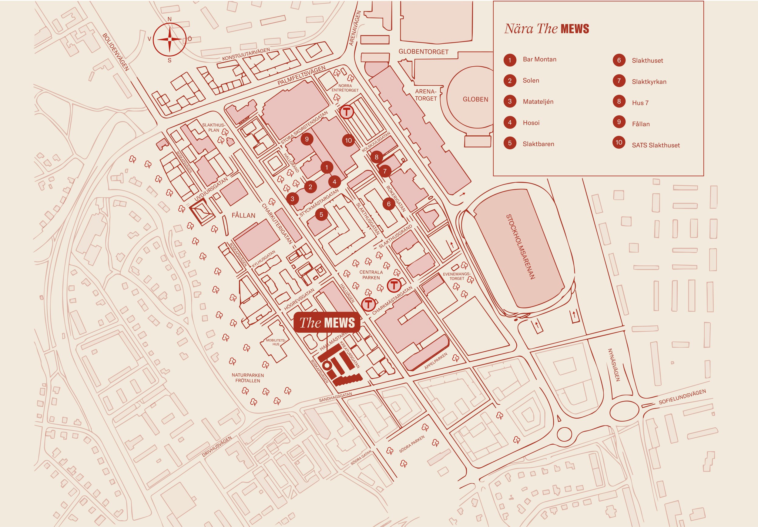 Kartan är ritad med brandets färger, med tydliga markeringar av var t-bana finns samt vilka spännande restauranger och upplevelser som finns i närheten av kvarteret. Det var spännande att rita en karta som skulle andas ett tydligt brand och en personlighet.