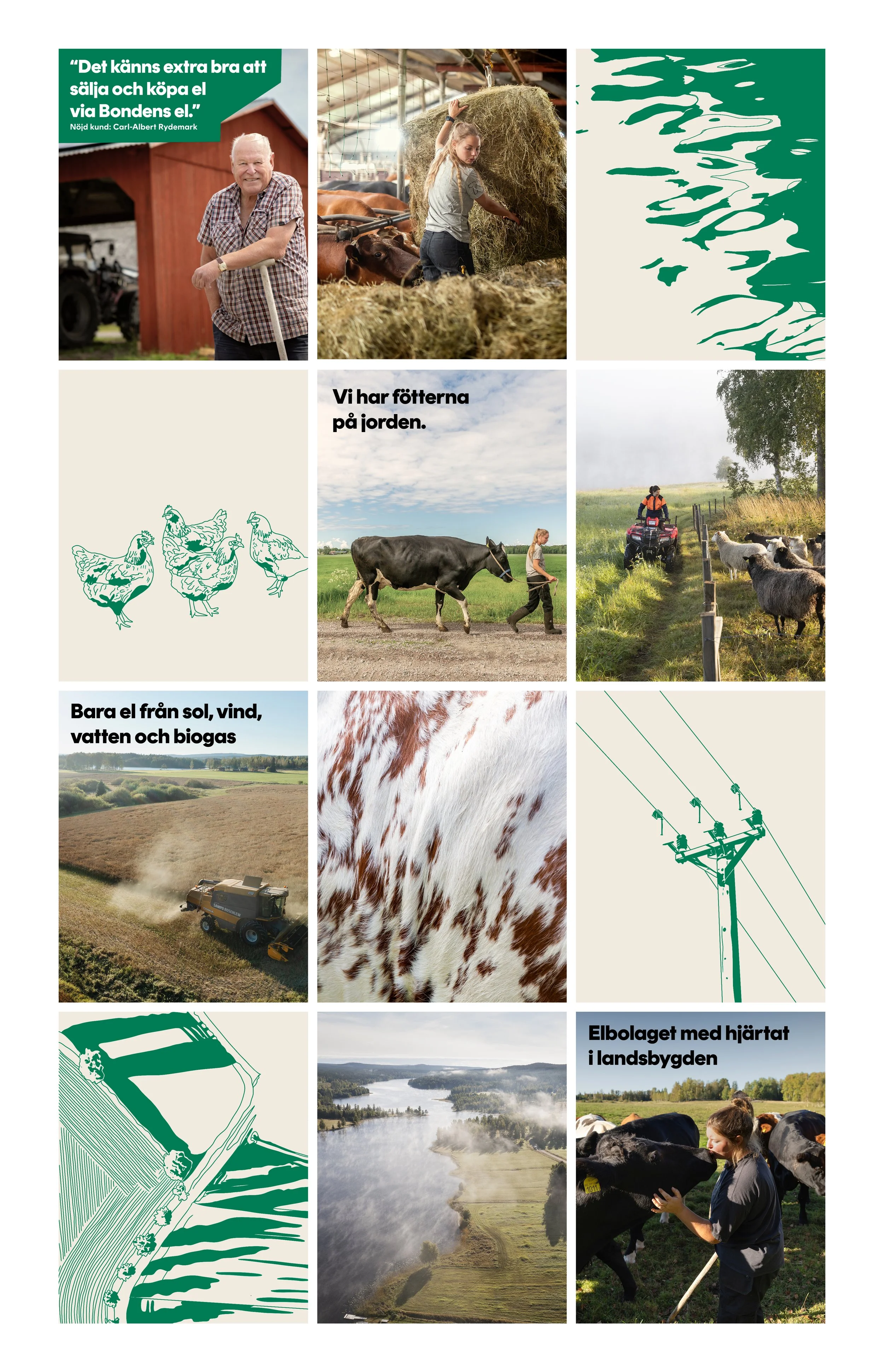 Det här alternativet erbjöd Bondens El en möjlighet att bygga vidare på sin identitet med ett formspråk som känns nära och genuint – och samtidigt ge utrymme för ett mer berättande, visuellt uttryck i deras kommunikation.